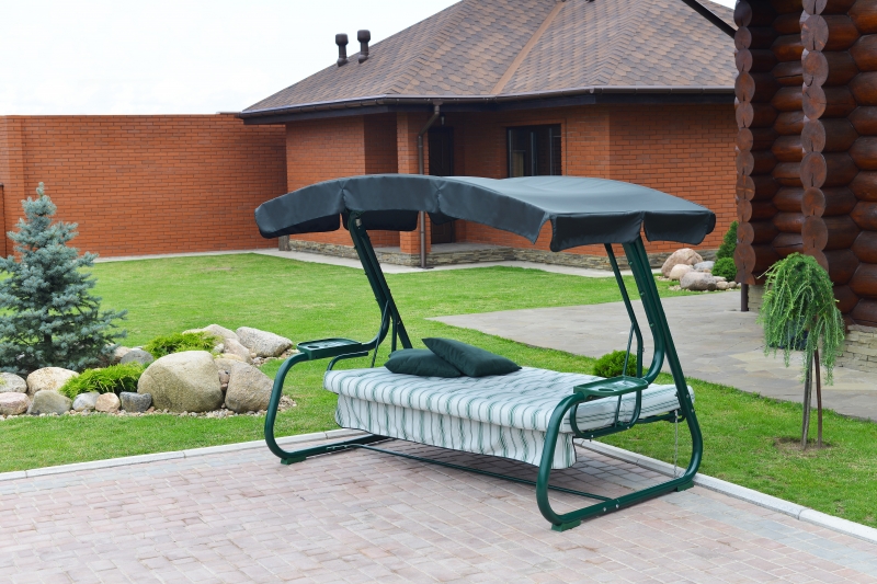 Удобный диван сконструирован таким образом, чтобы отдыхающие могли регулировать наклон спинки, и при необходимости полностью откидывать ее, превращая качели в просторную кровать.