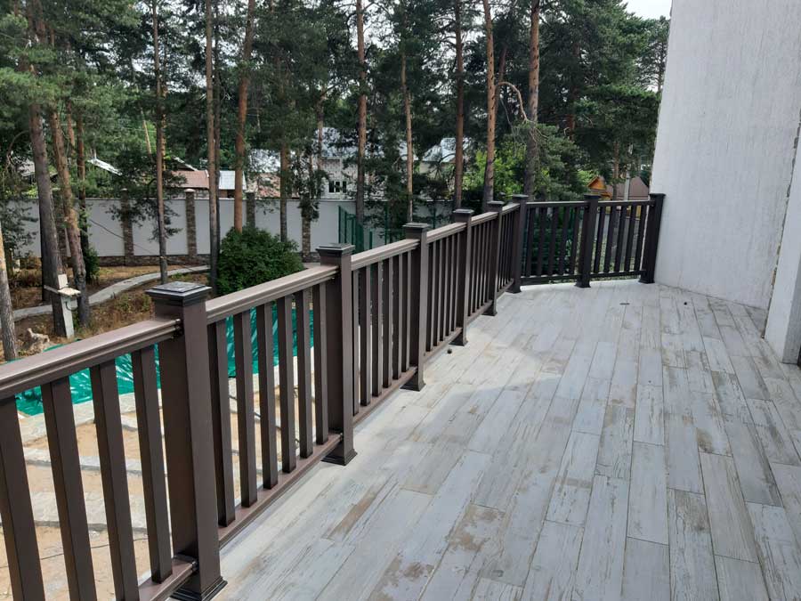 Произвели поставку и шеф-монтаж ограждений из ДПК Holzhof цвета венге (темный шоколад) на открытых площадках на 2-м и 3-м этажах частного дома.